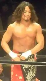 On August 1, 2013, after Tozawa had led Mad Blankey to victory against -akatsuki- in a match, where the losing stable would have to disband, the rest of Mad Blankey turned on him, kicking him out of the group and assuming Yamato their new leader.[7] On August 23, Yamato defeated Shingo Takagi to win the Open the Dream Gate Championship.[8] On August 30, Mad Blankey turned on Uhaa Nation after he refused to wrestle Akira Tozawa[9][10] Cyber Kong would also rejoin Mad Blankey on the same night.[11] Uhaa Nation and Tozawa, along with Shingo Takagi formed the Monster Express shortly afterwards. On September 12, 2013, Naruki Doi turned on Masato Yoshino and jumped to Mad Blankey, also signalling the end of World-1 International.[12] On October 6, Kong, BxB Hulk and Yamato won the vacant Open the Triangle Gate Championship by defeating Moster Express' Akira Tozawa, Masato Yoshino and Shingo Takagi.[13] On October 10, 2013, Yamato lost the Open the Dream Gate Championship to Yoshino.[14] On December 5, Mad Blankey also lost the Open the Triangle Gate Championship to Millennials (Eita, Flamita and T-Hawk).[15] On May 5, 2014, Yamato won the Open the Dream Gate Championship for a record-tying third time by defeating Ricochet.[16] On the same night, after being the last to escape and win the Cage match at Dead or Alive 2014, Hulk quit Mad Blankey, thus turning face.[17] On June 5, Mad Blankey defeated Hulk in a five on one handicap match to retain the naming rights of Mad Blankey when Hulk was attacked by Dr. Muscle. Dr. Muscle was later revealed to be Punch Tominaga. Yamato lost the title to former Mad Blankey stablemate BxB Hulk on July 20.[18] After Kzy and Doi both suffered long-term injuries, Mad Blankey added some temporary members which were picked by "Miracle Doi Darts" and were CIMA, Gamma, Don Fujii and K-ness. On December 28, Cyber Kong and Yamato would defeat the Millennials (Eita and T-Hawk) for the Open the Twin Gate Championship.[19] Kzy would return from his injury on January 10, 2015 as Dr. Muscle to participate in the Open the Brave Gate Championship tournament and two day later would defeat Eita in the finals to win his first Open the Brave Gate Championship. On January 16, he would cost the unit a 6 on 6 "All Out War" against the Millennials by throwing salt in Cima's face. He would then unmask and declare his allegiance to Dia.HEARTS.[20] On February 5, Metal Warrior would interfere in a 3-Way 6-Man Tag Team match between MB, Dia.HEARTS and the Millennials. He would feign a move to Dia.Hearts, helping them throughout the match, but near the end, betraying them and solidifying his allegiance to MAD BLANKEY. After the match, Metal Warrior revealed himself to be a returning Naruki Doi. On May 5, Cima, Don Fujii and Gamma were kicked out of Mad Blankey. On June 13, Yamato and Naruki Doi defeated Masato Yoshino and Shachihoko Boy to win their second Open the Twin Gate Championship as a team, and the 7th title reign for the Mad Blankey unit. On August 6, Mad Blankey forced the Millennials to disband after defeating them in a Losing Unit Disbands Three Way Survival Elimination Match which also featured the Jimmyz.
