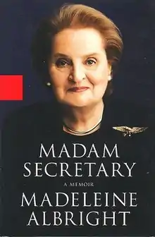 Madam Secretary: A Memoir is the autobiography of United States Secretary of State Madeleine Albright, published in 2003. It covers both her life and the eight years she spent in the Clinton administration, first as United States Ambassador to the United Nations and then as head of the State Department. The book's title reflects the term of address for a female governmental secretary. Madam Secretary appeared on The New York Times Best Seller list.