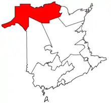 ![]() Madawaska—Restigouche in relation to other New Brunswick federal electoral districts | |||