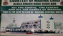 Madina Central Mosque or simply Madina Mosque is one of the largest mosques in Ghana located in the La-Nkwantanang-Madina Municipal Assembly. It is the main mosque in the district that congregates worshipers for the Friday Jumu'ah prayers.[1][2][3] Established after 1959, Madina mosque houses two schools; a basic secondary school offering secular education and a college that specializes in Qur'anic studies. Alms-giving is a common scene in the vicinity of the Mosque and researchers have often used the location in their case studies to try to understand the phenomenon of beggary in Ghana.[4][5][6]