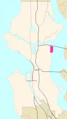 Madison Park is a neighborhood in east central Seattle, Washington, USA, named after the city park at the foot of E. Madison Street on the Lake Washington shore. It is bounded on the east by Lake Washington; on the south by the intersection of Lake Washington Boulevard E. and 39th Avenue E., beyond which is Denny-Blaine; on the west by Lake Washington Boulevard E.; and on the north by Union Bay. Washington Park and the private Broadmoor community and golf course are subunits within Madison Park. The neighborhood's main thoroughfares are E. Madison Street (northeast- and southwest-bound) and McGilvra Boulevard E. (north- and southbound).