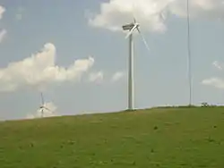 The Madison Wind Farm was developed and funded by the unregulated arm of PG&E, by project manager Laura Walker; construction began in 1999.[3][4] It was the first wind farm in New York State and the first merchant wind farm in the United States.[5] The facility is located on private dairy farm land in the town and county of Madison, in upstate New York. The New York State alternative energy program supported its development.[6]
