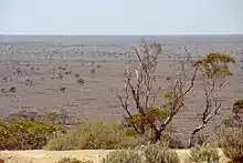 The land is mostly gently undulating calcareous plains with eucalypt–melaleuca–myall woodlands and chenopod shrubland interspersed with saltbush shrubland and bindii grassland.[5] Many caves can be found amongst the limestone bedrock of the Nullarbor Plain.[6]