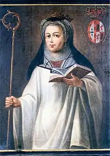 Infanta Mafalda of Portugal (also known as Blessed Mafalda, O.Cist. (c. 1195 – 1 May 1256 in Rio Tinto, Gondomar; Portuguese pronunciation: [mɐˈfaɫdɐ]) was a Portuguese infanta (princess), later Queen consort of Castile for a brief period. She was the second youngest daughter of King Sancho I of Portugal and Dulce of Aragon. Married briefly to the ten-year-old Henry I of Castile, she held for a time the title Queen of Castile.