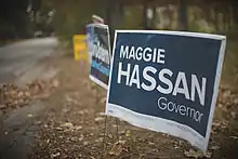 In October 2011, Hassan announced her candidacy for governor of New Hampshire.[33] She won the Democratic primary with 53% of the vote, defeating former state senator Jacalyn Cilley, who received 39%.[34] Hassan was endorsed by former U.S. President Bill Clinton.[35][9] Campaign themes included implementing the Affordable Care Act.[36]