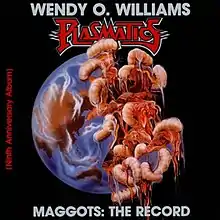 Maggots: The Record is the fourth studio album by American rock singer Wendy O. Williams and her band Plasmatics. It was released on February 18, 1987 by Profile Records. Labeled as a special "9th Anniversary Album", it was the last album released by the band. Despite being labeled a "Plasmatics" album, it is often regarded as another Wendy O. Williams's solo album, largely in part because her name is over that of the band, the merchandise for the tour has the WOW logo from her solo career, Michael Ray is playing lead guitars on the album, and the only original member is Wes Beech on rhythm guitar. all music compositions for this album were written and arranged by Michael Ray, except the "Propagators" song. Maggots: The Record was recorded in 1987 and is a concept album set 25 years in the future, where environmental abuse and the burning of fossil fuels have created a greenhouse effect, leading to an end of the world scenario. The album features various scenes of the White Family over the course of three days. The family is devoured while watching a TV game show. Valerie, the girlfriend of a hot-shot television reporter Bruce is devoured by three massive maggots while lying in her boyfriend's bed. The final scene of the record shows the entire human population is headed for imminent annihilation. The album was released through Profile Records under the WOW label in the United States and overseas by GWR Records, which had been started by Motörhead's longtime manager Doug Smith.