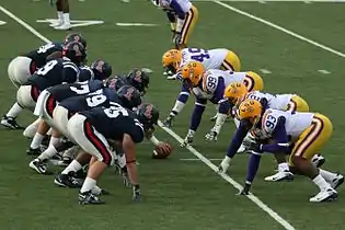 The Magnolia Bowl is the LSU–Ole Miss football rivalry.[2][3][4] It is an American college football rivalry game played annually by the LSU Tigers football team of Louisiana State University (LSU) and the Ole Miss Rebels football team of the University of Mississippi (Ole Miss). The teams compete for the Magnolia Bowl Trophy.[5] The Tigers and the Rebels first met in 1894, and have been regular opponents in Southeastern Conference (SEC), meeting annually, without interruption, since 1945.[6] The rivalry was at its height during the 1950s and 1960s, when both teams were highly ranked and during which time both teams claimed a national championship.[7] The rivalry died down from the 1970s to the 1990s, owing to Ole Miss not returning to conference or national prominence since the 1970s and because LSU has seen new rivalries emerge when the SEC split into two divisions in 1992, most notably Alabama, Arkansas, Auburn, and Florida.[8] Even though the rivalry has not attracted the same national attention in recent years, it still stirs up passion in both Oxford and Baton Rouge.[9][10]