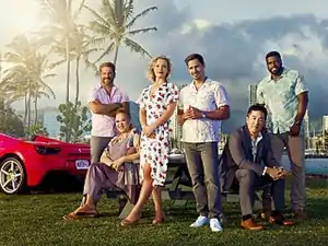 Rick Wright (Zachary Knighton), Kumu Tuileta (Amy Hill), Juliet Higgins (Perdita Weeks), Thomas Magnum (Jay Hernandez), Gordon Katsumoto (Tim Kang), and T.C. Calvin (Stephen Hill).