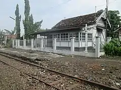 Maguwo Station (MGW) is a Class II airport railway station located in Maguwoharjo, Depok, Sleman Regency, Special Region of Yogyakarta, Indonesia. This station, which is located at an altitude of +118 meters, is included in the Operational Region VI Yogyakarta and is an active station which is located in the eastern and northernmost areas of Special Region of Yogyakarta. This station is the first airport railway station in Indonesia and now has four railway tracks with lines 2 and 3 being straight lines.