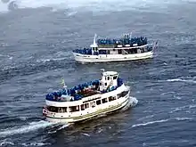 The Maid of the Mist is a sightseeing boat tour of Niagara Falls, starting and ending on the American side, crossing briefly into Canada during a portion of the trip.