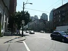 Main Street is a major north–south thoroughfare bisecting Vancouver, British Columbia, Canada. It runs from Waterfront Road by Burrard Inlet in the north, to Kent Avenue alongside the north arm of the Fraser River in the south.