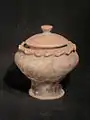 Containers in various sizes and shapes have been discovered in Trowulan. The containers probably used for various purposes, from water container to grain container. From large jar to box shaped water container. The typical kendi, a bulbous and tall neck water vessel with breast-like spout, similar to those still in use today have been found from Majapahit period sites.[4]