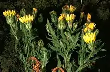 Malacothrix squalida is a rare species of flowering plant in the aster family known by the common name Santa Cruz desertdandelion. It is endemic to Santa Cruz and Anacapa Islands, two of the eight Channel Islands of California, where it grows on rocky seaside bluffs and cliffs. The plant is very limited in distribution and today exists only in degraded habitat on these two small islands. It was last collected from Santa Cruz Island in 1968, and two populations were noted on Anacapa Island in 1998; in drought years there may be no plants at all.[1][2] It became a federally listed endangered species in 1997. This is an annual herb growing a hairless, waxy stem 20 to 30 centimeters in maximum height. The leaves are sharply lobed. The inflorescence is an array of flower heads lined with oval-shaped phyllaries. The ray florets are 1 to 2 centimeters and light yellow in color.