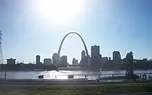 Malcolm W. Martin Memorial Park is a park on the east side of the Mississippi River in East St. Louis, Illinois, directly across from the Gateway Arch and the city of St. Louis, Missouri. Its major feature is the Gateway Geyser, a fountain that lifts water up to 630 feet (192 m). The Gateway Geyser is a counterpart to the equally tall Gateway Arch, and is visible from the west side of the river to the right of the prominent Cargill grain elevator. Four smaller fountains around the Geyser represent the four rivers which converge near the two cities: The Mississippi, Missouri, Illinois, and Meramec. The park also includes an elevated viewing point overlooking the river.