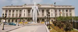 Male/Female is a 15.5-meter (51 ft) tall hollow stainless steel sculpture by Jonathan Borofsky standing at the entrance to Pennsylvania Station in Baltimore, Maryland. It depicts intersecting colossal male and female forms with pulsing light-emitting diode light.[2]