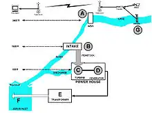 | B | Deflector | Deflects water flow away from turbine | Angle position of deflector (controlled by governor) | 0° - 90° Degrees |
