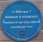 The 1887 Baedeker's includes Malvern in a London–Worcester–Hereford itinerary and described as "an inland health resort, famous for its bracing air and pleasant situation" and "a great educational centre", with five hotels that are "well spoken of", a commercial hotel, the Assembly Rooms and Gardens, and many excursions on foot, pony and by carriage.[57] Other descriptions of the diversions mention bands, quadrilles, cricket (residents vs visitors) and billiard rooms.[8]: 197 [24] The Duchess of Teck stayed, with her daughter Mary (later queen consort of George V), in Malvern in the Autumn of 1891, joined by Lady Eva Greville.[58] and the Duke of Teck.[59] The Duchess was "perfectly enchanted with Malvern and its surroundings" and, with the Duke, visited Malvern College.[60] The Duchess returned to open the new waterworks at Camp Hill in 1895.[24] In 1897, the painter Edward Burne-Jones came to Malvern for the "bracing air", on the recommendation of his doctor, but stayed in his hotel for a week.[61] The 7-year-old Franklin D. Roosevelt visited in 1889, during a trip to Europe with his parents.[62]
