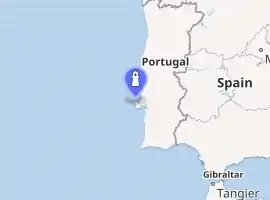 The Mama lighthouse (Portuguese: Farol da Mama) is located in the Carnaxide Sierra (Portuguese: Serra de Carnaxide) of the municipality of Oeiras, in Lisbon District, Portugal.[1][2] It is built on a round hill, known as the Mama Sul, next to a Geodesic landmark.[3] The Mama Lighthouse is about 4 km inland, northwest of Belém, and combines with the Esteiro and Gibalta lighthouses to indicate the alignment of the southern entrance to the Port of Lisbon.[4]