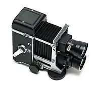 | Viewfinder | ground glass, waist-level |