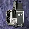 The Mamiya C220 is a lightweight twin-lens reflex camera made in the early 1970s by the Japanese camera manufacturer Mamiya. The camera has interchangeable lenses ranging from 55 mm wide-angle to 250 mm telephoto and accepts 120 and 220 rollfilms. The rack and pinion focusing system with a bellows makes it possible for close-up photography without attachments. The straight film path has no sharp turns for absolute flatness of the film.