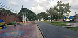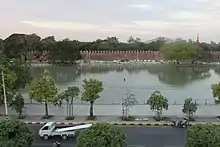 Originally built in 1959, it was demolished in 1993before being subsequently rebuilt and re-opened it as a public park in 2018.[1] A proposal to rebuild the park was initially introduced in the '100 days projects of Mandalay' by new cabinet, but stalled due to insufficient funding. Afterwards, the Mandalay City Development Committee submitted a proposal for the project to the Security Committee, and the Hluttaw approved 300 million for the project in 2017-2018 Budget. The Central Command of Tatmadaw then declared that they would take control of rebuilding the park out of concern for maintaining the security of the palace. Rebuilding began from the Southern gate of the Mandalay Palace.[2]