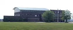 An airport for Manassas was proposed in 1930, when the mayor was Harry P. Davis.[4] It was built in 1931 on 94 acres (0.38 km2)[5] along Virginia Route 234, in the area now known as Manaport Shopping Center. Originally owned privately, the Town of Manassas bought the airport in 1945.[6] Due to airport activity and nearby housing development, the airport moved to its current location in 1964. The new airport opened with a single 3,700-by-100-foot (1,128 m × 30 m) paved runway. In 1992, the city purchased a control tower from Centennial Airport near Denver and reassembled it at Manassas Regional Airport. A new terminal was built in 1996.[7]