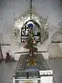 For those who are fit to make the climb, it is considered a rewarding experience and a meritorious deed at the same time. Two gigantic chinthes or leogryphs (stylised lion figures) stand guard at the southern and main approach at the foot of the hill, popularly known as the Chinthe hnakaung atet (two chinthes ascent). It is a gentle climb and there are many stops along the way, most importantly the hermit U Khanti's dazaung or hall where the Peshawar Relics ( three fragments of bone of the Gautama Buddha) were kept from 1923 until after the Second World War when they were moved to a building at the foot of the hill and no longer on display.[2] Leaving U Khanti's dazaung is by way of a tunnel lined by Hnakyeik shissu or the 28 Buddhas of the past and present worlds, or alternatively up a steep flight of steps next to the tunnel. Climbers will see plenty of stalls selling flowers, paper streamers, miniature pennants and umbrellas for the Buddha, and food and refreshment for visitors and pilgrims. All the dazaungs have frieze paintings, most of them from the late Konbaung dynasty period; there is one depicting 'Awizi ngayè (Avici Hell) in gory detail.