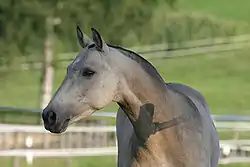 Traditionally, the mane is braided on the right side of the neck. This is still the standard for show hunters in the United States and eventers, although dressage horses are commonly braided on either side. It was also traditional in the USA that male horses would have an odd number of braids, and even number for mares.[2] However, this rule is rarely, if ever, followed by modern braiders.