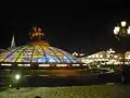 During the 1990s Moscow mayor Yury Luzhkov had the square closed to traffic and substantially renovated. The centrepiece of the refurbished square is a four-story underground shopping mall and parking lot, surmounted by a rotating glass cupola, which forms a world clock of the Northern hemisphere with major cities marked and a scheme of lights below each panel to show the progression of the hour.