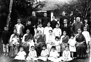 The Mangalorean Catholics constituted a small community widely scattered across the South Canara district. Rather than being a closely knit and united group, the Goan Catholic immigrants and their progeny did not associate with the native Catholics on account of caste, origin, and language, and even among themselves were strongly divided by caste.[4] The Hindus, including the indigenous Brahmins (mostly belonging to the Shivalli, Havyaka, and Kota sub-groups) and Bunts did not associate with the Catholics and would not admit them into their houses on account of their religion.[184] However, a close contact was kept by the Catholics with the Hindus of the same caste who were refugees from Goa. Catholics would invite their Hindu cousins to festivities such as birth celebrations, weddings, and funeral feasts. The Hindus accepted such invitations.[184] Unlike his Hindu counterpart, a high-caste Mangalorean Catholic did not consider himself polluted upon physical contact with a member of the lower caste, but members of different castes did not fraternise or invite each other home for dinner.[212]