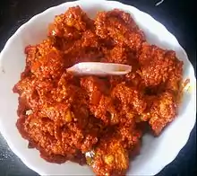 Mangalorean Chicken Sukka or Kori Sukka/Kori Ajadina(Tulu) is an Indian Dish of Chicken native to Mangalore and Udupi region. The word "Sukka" comes from Hindi "Sukha" which means "Dry", sometimes also called as "Kori Ajadina". However it can be prepared in two variations Dry and semi gravy.[1][2]