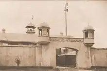 The Old Bilibid Prison, then known as Carcel y Presidio Correccional (Spanish, "Correctional Jail and Military Prison") occupied a rectangular piece of land that was part of the Mayhalique Estate in the heart of Manila.[4] The old prison was established by the Spanish colonial government on 25 June 1865 via royal decree.[5] It was divided into two sections: the carcel (jail), which could accommodate 600 inmates; and the presidio (prison), which could hold 527 prisoners.[4] The Commonwealth of the Philippines enacted Commonwealth Act No. 67 on 23 October 1936, which allocated 1 million Philippine pesos to build a new prison in Muntinlupa on 551 hectares (1,360 acres) of land in an area that was considered at that time to be remote.[6][7] Construction began the same year. In 1940, the prisoners, equipment and facilities were transferred from Old Bilibid to the new prison, which was officially named the New Bilibid Prison.[7] The remnants of the old facility became the Manila City Jail.[8]