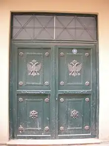 A characteristic door with the symbol of the double-headed eagle in Gytheio.