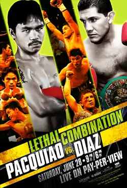 Manny Pacquiao vs. David Diaz, billed as Lethal Combination, was a lightweight title boxing match. The bout took place on June 28, 2008 at the Mandalay Bay, Las Vegas, Nevada, U.S. Pacquiao defeated Diaz via technical knockout in the ninth round. After the fight, Pacquiao's performance sealed his status as the best pound-for-pound fighter because of the retirement of the undefeated five-division champion Floyd Mayweather Jr. weeks prior to the fight[1][2] and put Pacquiao's name in the history books as the only Asian fighter to win five world titles in five weight classes.