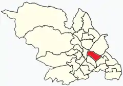 Manor Castle ward—which includes the districts of Claywood, Manor, Manor Park, Park Hill, and Wybourn[2]—is one of the 28 electoral wards in City of Sheffield, England. It is located in the eastern part of the city and covers an area of 5.4 km2 (2.08 mi2). The population of this ward in 2001 was 21,000 people in 9,700 households, the population increasing to 21,223 at the 2011 Census.[1] It is one of the wards that make up the Sheffield Central constituency.