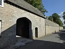 Walter Septimus Curtis (born 1871) was the owner of the estate in the early 1900s. He was lord of the manors of Denbury and of adjoining Newton Abbot and Newton Bushel.[28] He was a barrister of Lincoln's Inn and was educated at Trinity Hall, Cambridge.[29] He was the 3rd and youngest son of John Curtis (1836-1878) by his wife Juliana Davies, eldest daughter of John Davies of Manchester. Walter's grandfather was Matthew Curtis (1807–1887) of Thornfield in the parish of Heaton Mersey, Lancashire, the leading manufacturer of cotton-spinning machinery in Britain and thrice Mayor of Manchester.[30] Walter married Eleanor Francis Master, daughter and heiress of Robert Edward Master, JP, Madras Civil Service, of Hillingdon Furze, Uxbridge, Middlesex,[31] by whom he had one son, Robert Master Curtis (born 1920) and 6 daughters,[32] including Lettice Curtis (1915-2014) an aviator, flight test engineer, air racing pilot, and sportswoman.[33] Walter Curtis made substantial additions including the gatehouse[34] and the very high (5 metre) and very long boundary wall in which it is set, probably built between 1912 and 1914,[35] which stretches from the village of Denbury for several hundred yards along the roadside, past Denbury Green. His coat of arms (Per saltire argent and azure two horse's heads erased in pale gules and in fess as many fleurs-de-lys of the first[36] with inescutcheon of pretence for Master Azure, a fess embattled between three griffin's heads erased or[37]) is sculpted on a stone tablet above the inner entrance of the gatehouse.