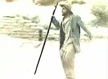 Warren was very active in the theater scene in El Paso, Texas, and he once appeared as a walk-on for the television series Route 66, where he met screenwriter Stirling Silliphant. While chatting with Silliphant in a local coffee shop, Warren claimed that it was not difficult to make a horror film, and he bet Silliphant that he could make an entire film on his own. After placing the bet, Warren began the first outline of his script on a napkin, right inside the coffee shop.[4] To finance the film, Warren accumulated a substantial but insufficient amount of cash, $19,000 (equivalent to $159,000 in 2021), and hired a group of actors from a local theater, many of whom he had worked with before, as well as a modeling agency.[4] Because he was unable to pay the cast and crew any wages, Warren promised them a share in the film's profits.[9][10] Under both working titles The Lodge of Sins and Fingers of Fate, the movie was filmed in mid-1966. Filming mainly took place on the ranch of Colbert Coldwell, a lawyer who shared an office floor with Warren and who later became a judge in El Paso County. Most of the equipment used for production was rented, so Warren had to rush through as many shots as possible to complete filming before the deadline for returning the equipment. Footage was shot with a 16 mm Bell & Howell camera that had to be wound by hand and thus could only take 32 seconds of footage at a time,[9] resulting in the many editing problems present in the final cut.[11] Rather than using double-system recording, all sound effects and dialogue were dubbed later in post-production, done by only a handful of people, including Warren, Tom Neyman, Reynolds, Jennings and Warren's wife, Norma.[9][12] Later during production, Warren renamed the film Manos: The Hands of Fate.[9] Warren's small crew became so bemused by his amateurishness and irascibility that they derisively called the film Mangos: The Cans of Fruit behind his back.[9][13]
