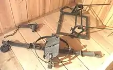 A mantrap is a mechanical physical security device for catching poachers and trespassers. They have taken many forms, the most usual being like a large foothold trap, the steel springs being armed with teeth which meet in the victim's leg. Since 1827, they have been illegal in England, except in houses between sunset and sunrise as a defence against burglars.[1][2]