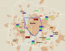 Del Valle also built the new SE-30 ring road, first as a two-lane road before its expansion to three-lanes, around Seville to re-route traffic flow.[4]