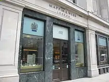 A branch of Mappin & Webb[9] once occupied a prominent location in the City of London at the junction of Poultry and Queen Victoria Street, adjacent to Bank junction. Designed in the neo-gothic style by John Belcher in 1870, the listed building was demolished in 1994 to make way for the construction of a postmodern office and retail building, No 1 Poultry, despite a fiercely fought campaign to save the 19th century building.