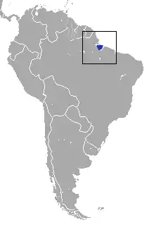 It is endemic to Brazil, in the Amazon River delta region within Maranhão state.