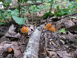 Marasmius siccus, or orange pinwheel,[1] is a small orange mushroom in the Marasmius genus, with a "beach umbrella"-shaped cap. The tough shiny bare stem is pale at the top but reddish brown below, and the gills are whitish. The stem is 3–7 centimetres (1.2–2.8 in) tall and the cap is 0.5–2.5 centimetres (0.20–0.98 in) wide.[2][3][4][5]