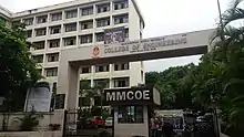 Marathwada Mitra Mandal's College of Engineering Karvenagar (MMCOE) is an Best Engineering College located in Pune,Karvenagar Maharashtra. The college offers Bachelors in Engineering (B.E) in the branch of Computer, Electrical, Electronics and Telecommunication, Information Technology and Mechanical Engineering and Artificial Intelligence. The college also provides Masters in Business Management (MBA) and Computer Engineering.!.[2]