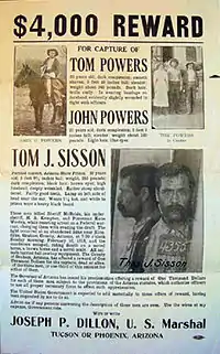 A United States Marshals wanted poster for Tom Sisson and the Power brothers following a shootout in Arizona.