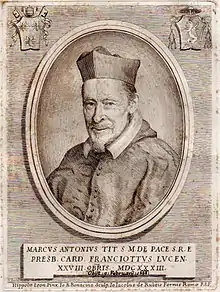 Marco Antonio Franciotti (1592 – 8 February 1666) was an Italian Catholic Cardinal and Bishop of Lucca.