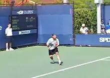 Baghdatis started his season on the 2008 ATP Tour at the Chennai Open in India, where he lost to Robin Haase in the first round.[12] At the Australian Open, Baghdatis defeated 2002 champion Thomas Johansson and 2005 champion Marat Safin, before losing in the third round to 2005 runner-up Lleyton Hewitt, in five sets. This match lasted 282 minutes, beginning at 11:52 pm and finishing at 4:34 am.[13] At the French Open, he lost in the first round to Simone Bolelli in three sets. At the 2008 Halle Open in Germany, where he was the runner up in 2007, he lost to Roger Federer in the quarterfinals. At the Wimbledon Championships, seeded tenth, Baghdatis progressed to the fourth round, where he lost to Feliciano López in five sets. Baghdatis suffered injuries for the remainder of the season and did not participate in the US Open.