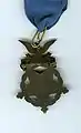 View of back of Medal of Honor presented to Marcus W. Robertson with inscription