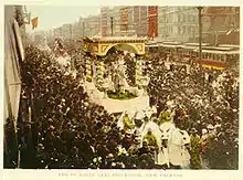 Epiphany on January 6, has been recognized as the start of the New Orleans Carnival season since at least 1900; locally, it is sometimes known as Twelfth Night although this term properly refers to Epiphany Eve, January 5, the evening of the twelfth day of Christmastide.[38] The Twelfth Night Revelers, New Orleans' second-oldest Krewe, have staged a parade and masked ball on this date since 1870.[39] A number of other groups such as the Phunny Phorty Phellows, La Société Pas Si Secrète Des Champs-Élysées and the Krewe de Jeanne D'Arc have more recently begun to stage events on Epiphany as well.[40]