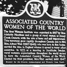 The Federation of Women's Institutes of Canada has since replaced this marker with a stone bearing the ACWW logo and a commemorative message.[14]