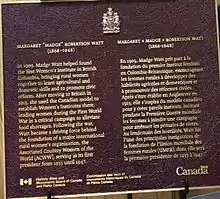 Margaret Robertson Watt was named a Person of National Historic Significance by the Canadian government in 2007. A plaque honoring this designation was unveiled at Colwood, British Columbia on August 14, 2015.